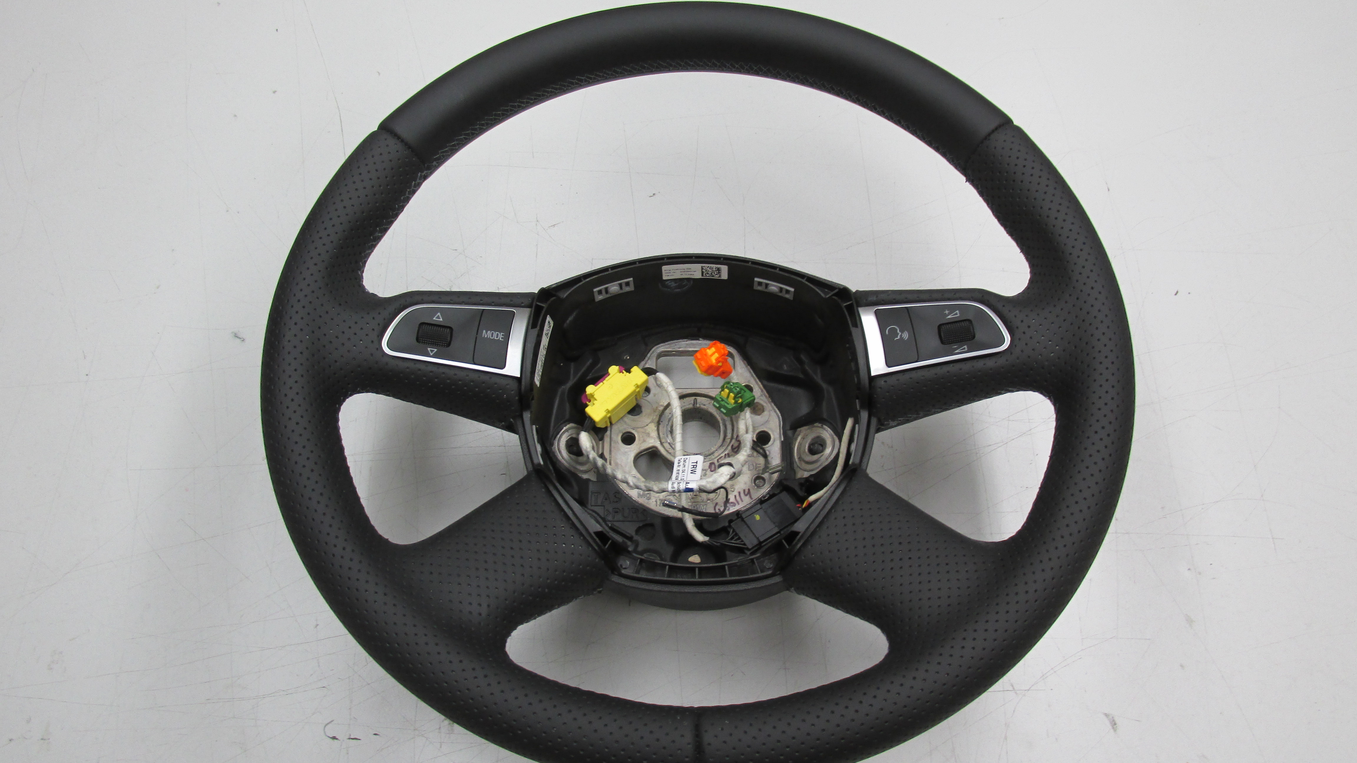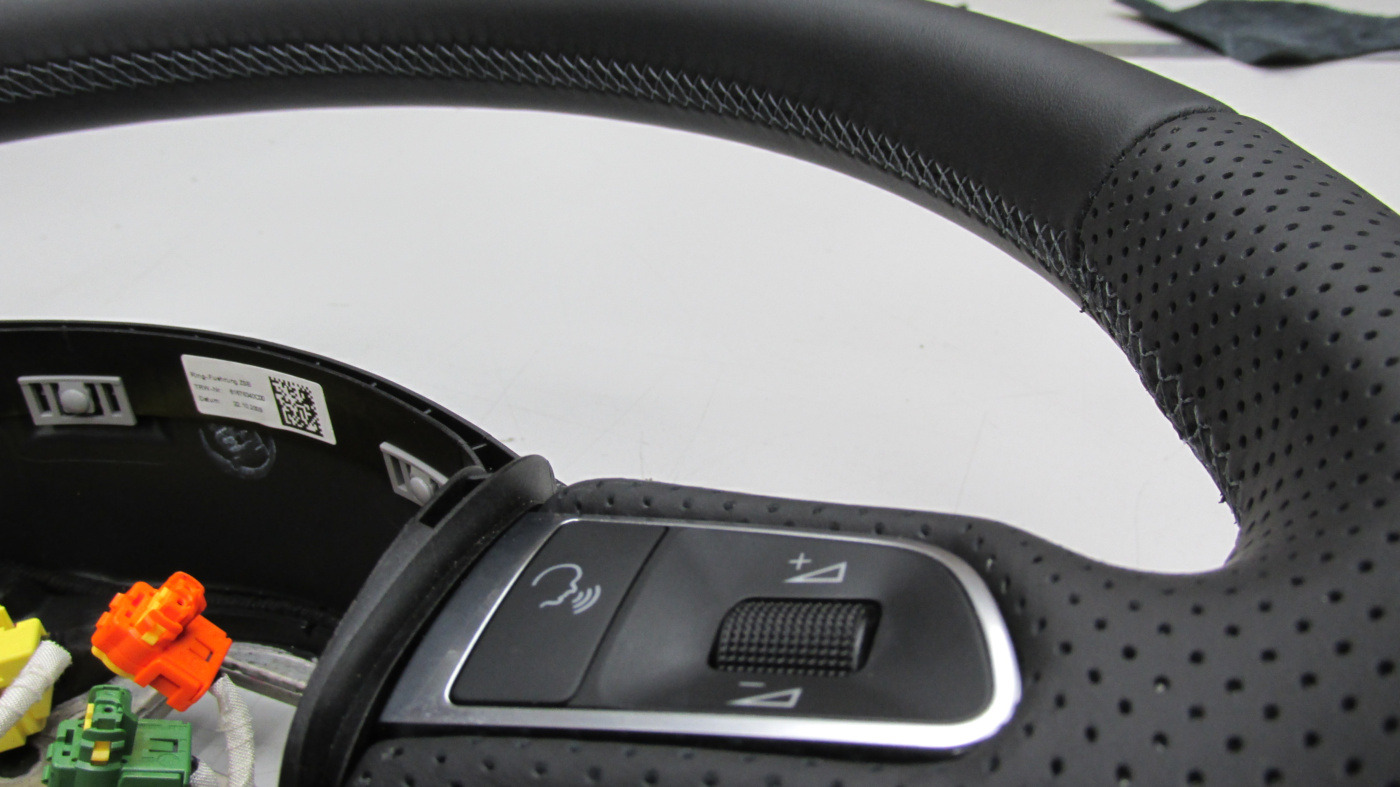 Перетяжка руля в комбинацию черной перфорированной и гладкой натуральной кожи Nappa.